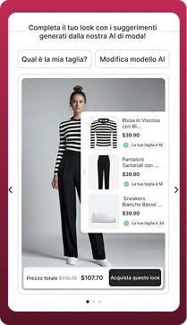 Semplifica lo shopping permettendo ai clienti di trovare il look perfetto con un solo clic o caricando una foto.