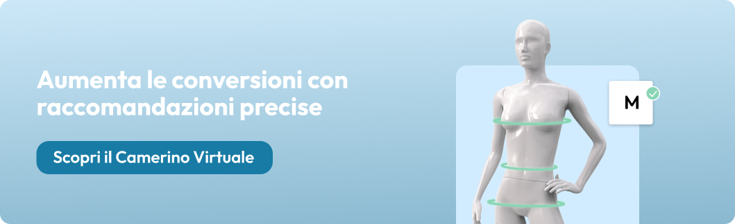 - Il camerino virtuale restituisce, in pochi secondi, la taglia più accurata per quel brand e quel prodotto.