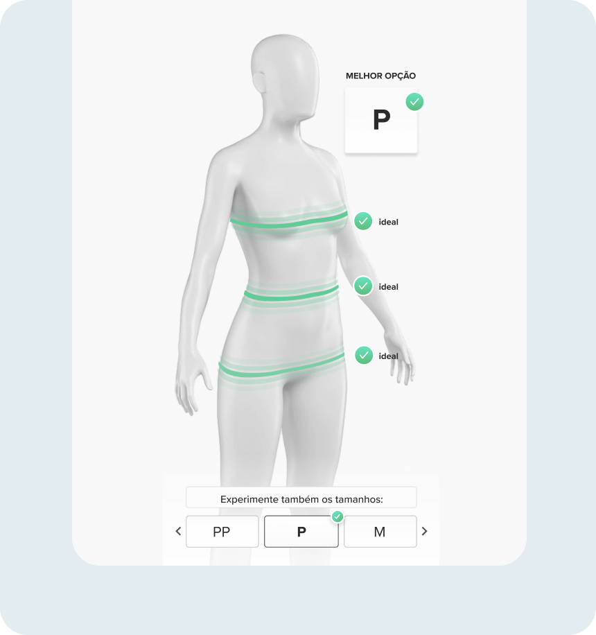 Elimine dúvidas de tamanho com uma recomendação automatizada e personalizada